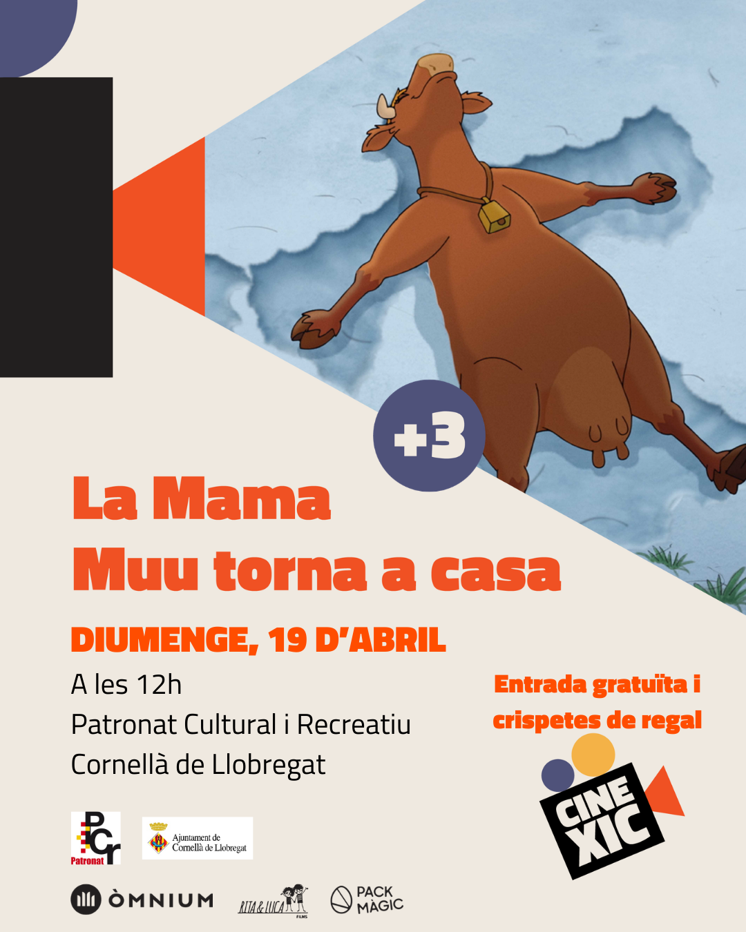 Seguim amb el cinema infantil en català al Patronat de la mà de CineXic. Aquest mes d'abril ens ve a visitar la Mama Muu que, després de la visita de la cigonya viatgera, es pregunta on és realment casa seva.